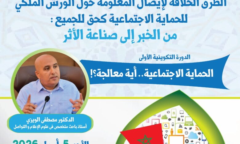 كما أبرزت أن البرنامج التكويني، الممتد عبر مجموعة من الورشات المتتابعة، يقوم على مقاربة قائمة على المواكبة والتجريب، بهدف تشجيع إنتاج محتويات إعلامية مسؤولة وقادرة على تعزيز فهم السياسات الاجتماعية وترسيخ ثقافة الحماية الاجتماعية، بما يسهم في دعم الانخراط المجتمعي حول هذا الورش الوطني.